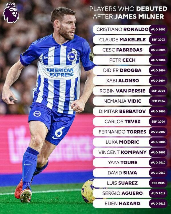 Piłkarze, którzy zadebiutowali w Premiership podczas, gdy James Milner już w niej grał