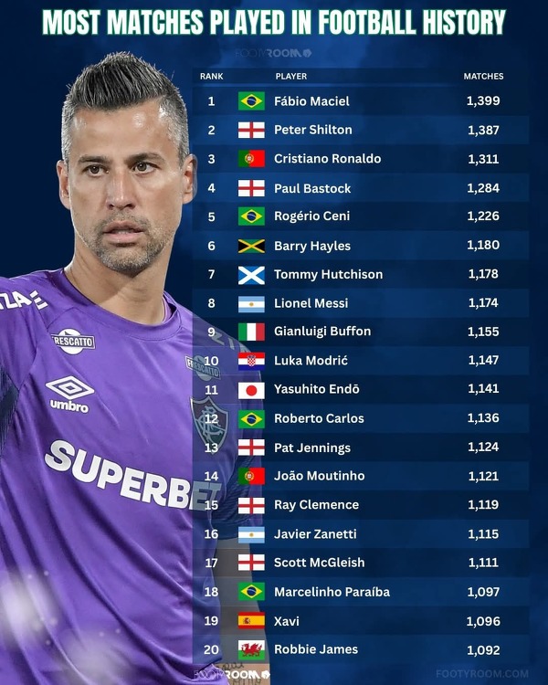 Piłkarze z największą liczbą rozegranych meczów w historii