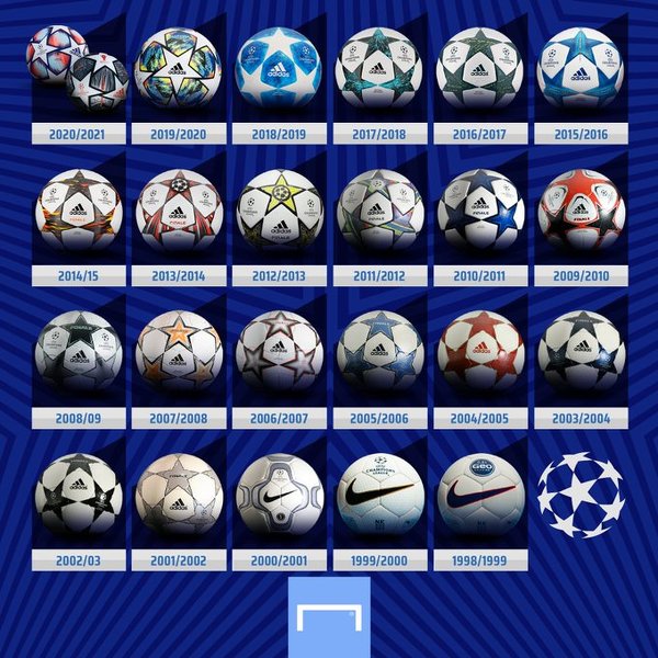 Piłki Ligi Mistrzów z biegiem lat
