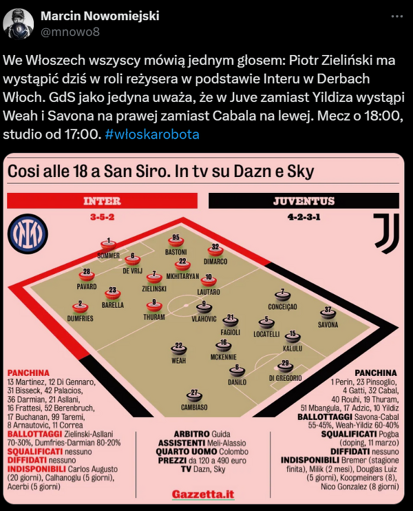 Piotr Zieliński ma dzisiaj zagrać w roli registy