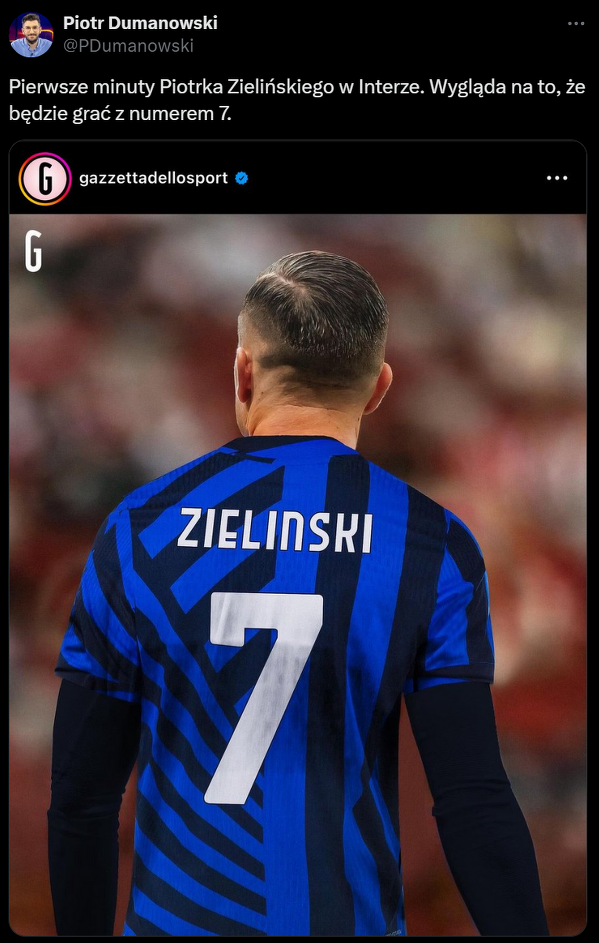 Piotr Zieliński zagrał z numerem "7" w sparingu z Pergolettese