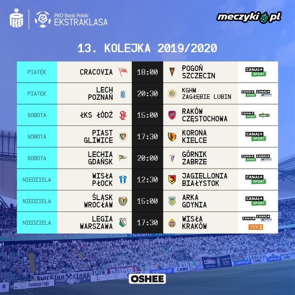 Plan transmisji 13. kolejki PKO Ekstraklasy