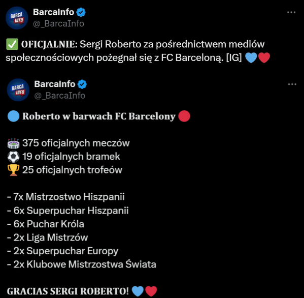 Po 18 latach Sergi Roberto opuszcza Barcelonę