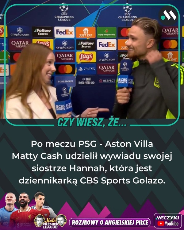 Po meczu PSG - Aston Villa Matty Cash udzielił wywiadu swojej siostrze Hannah, która jest dziennikarką CBS Sports Golazo