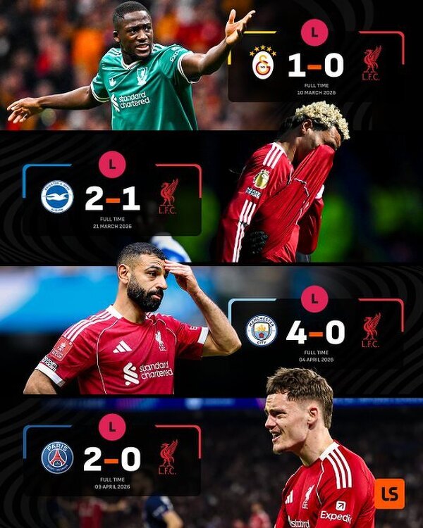 Po raz pierwszy od 14 lat Liverpool przegrał cztery wyjazdowe mecze z rzędu