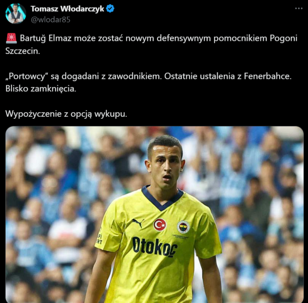 Pogoń Szczecin jest bardzo bliska sfinalizowania transferu Bartuğa Elmaza z Fenerbahçe