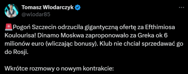 Pogoń Szczecin odrzuciła dużą ofertę za Efthimiosa Koulourisa
