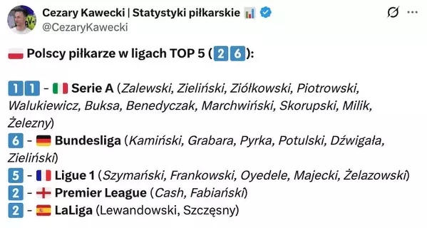 Polscy piłkarze w TOP5 ligach