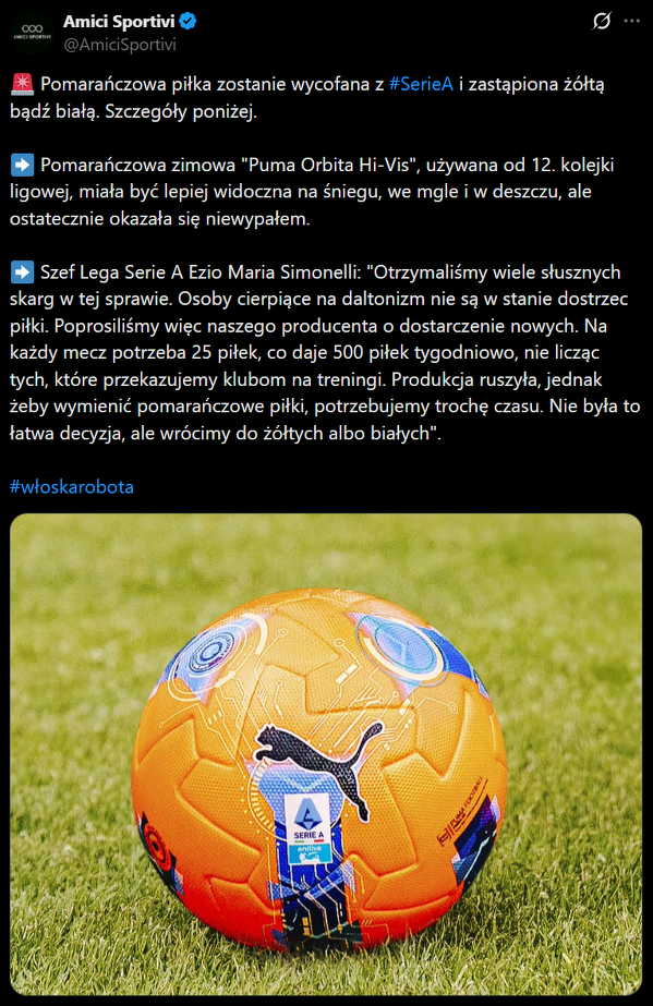 Pomarańczowe piłki znikną z boisk Serie A