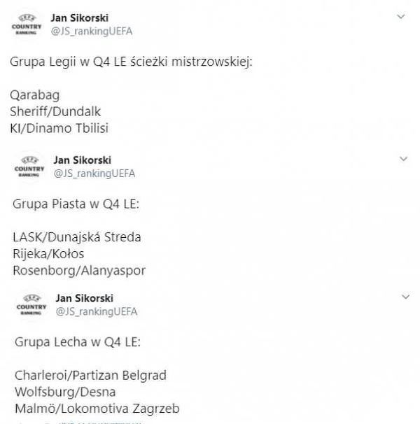 Potencjalni rywale Legii, Piasta i Lecha w 4 rundzie el. do LE