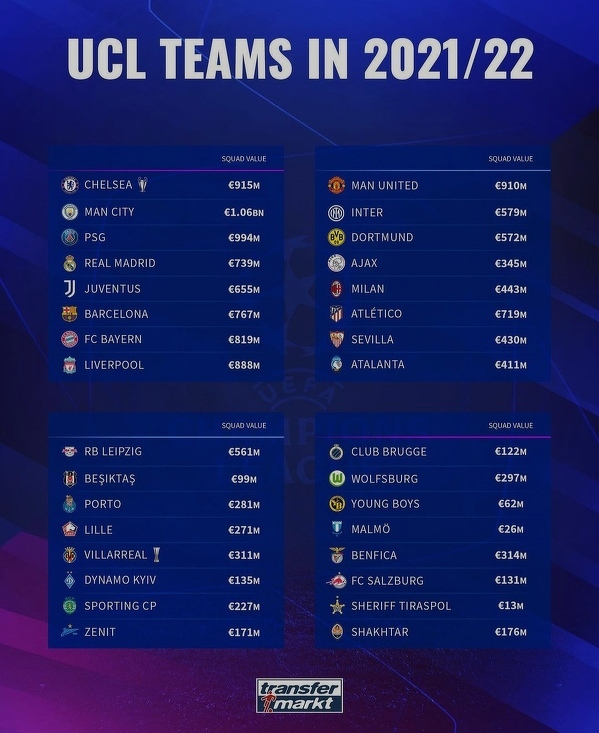 Poznaliśmy wszystkie 32 zespoły biorące udział w lidze mistrzów 2021/22