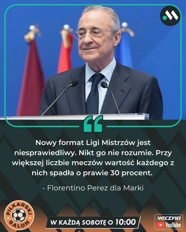 Prezes Realu Madryt krytykuje nowy format Ligi Mistrzów