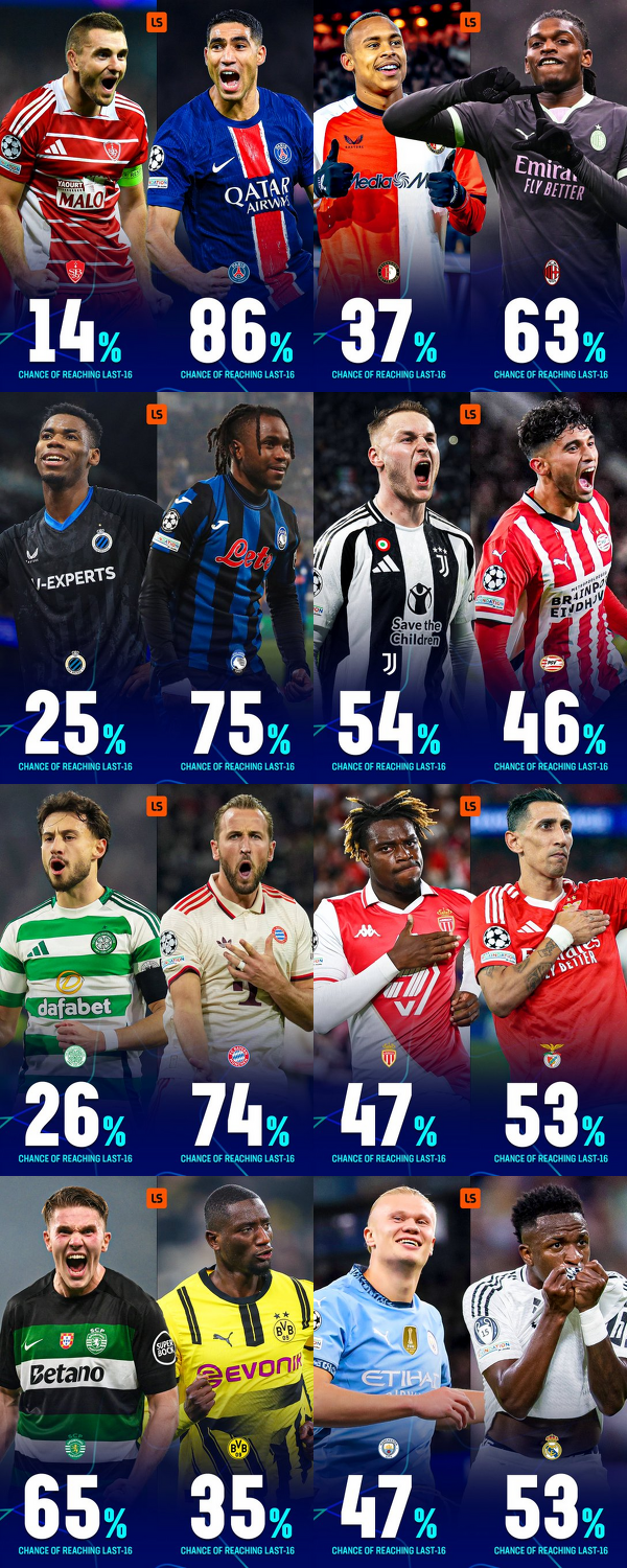 Procentowe szanse na awans do kolejnej rundy LM według wyliczeń Opty