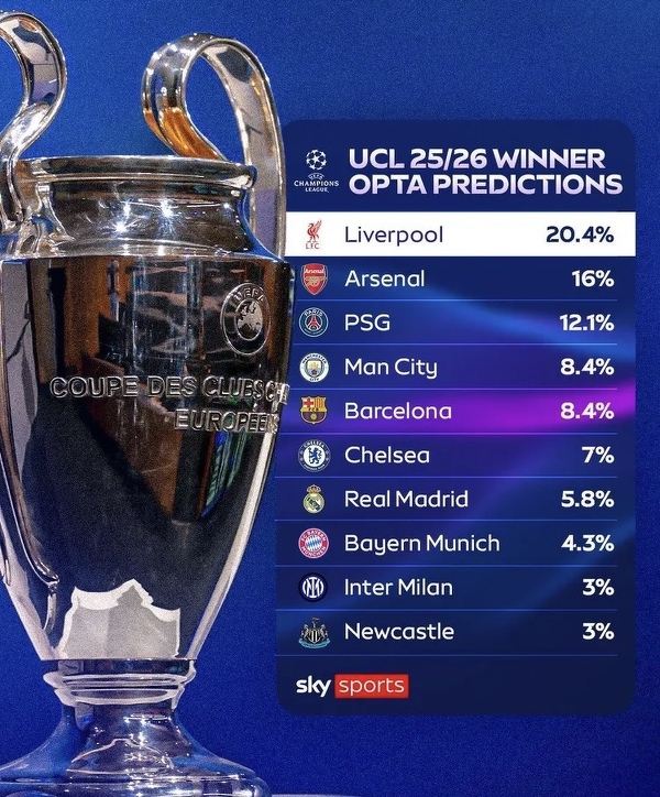 Procentowe szanse na triumf w LM według Opty
