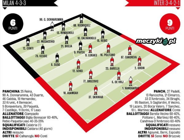 Przewidywane składy na mecz Milan vs Inter według Gazzetta dello Sport