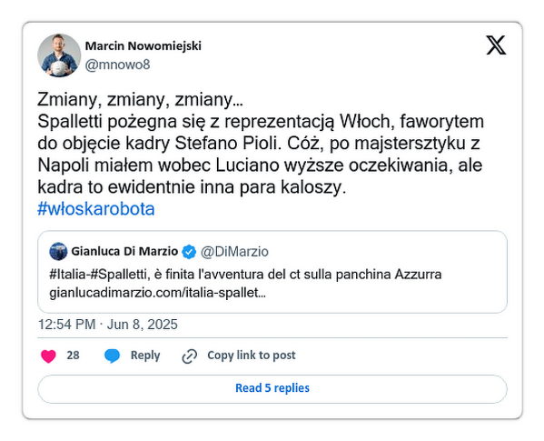 Przygoda Luciano Spallettiego z reprezentacją Włoch dobiega końca