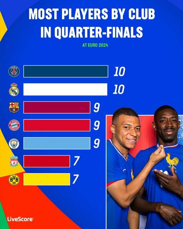 PSG i Real Madryt mają najwięcej przedstawicieli w ćwierćfinałach EURO 2024