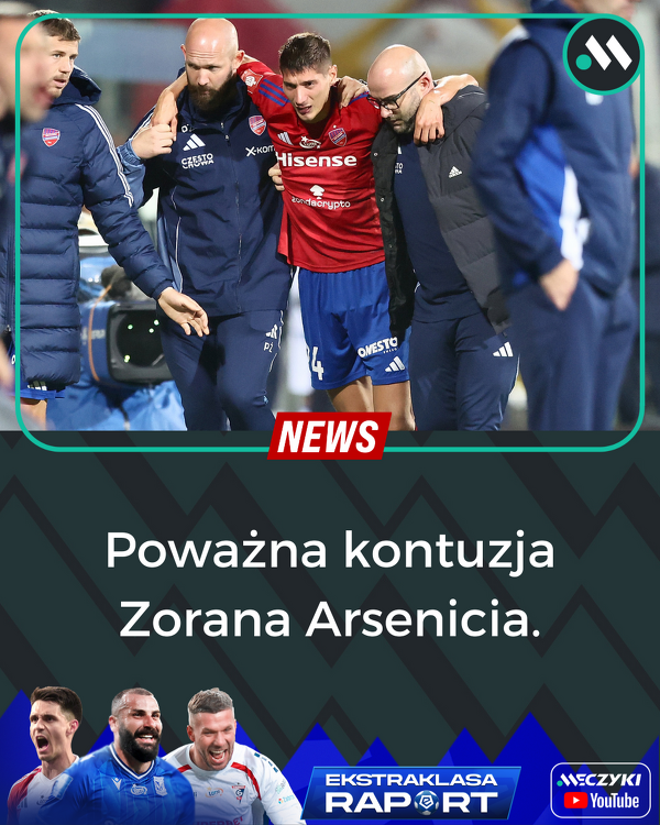 Raków potwierdził, że Zoran Arsenić doznał złamania kości strzałkowej po faulu Luisa Palmy