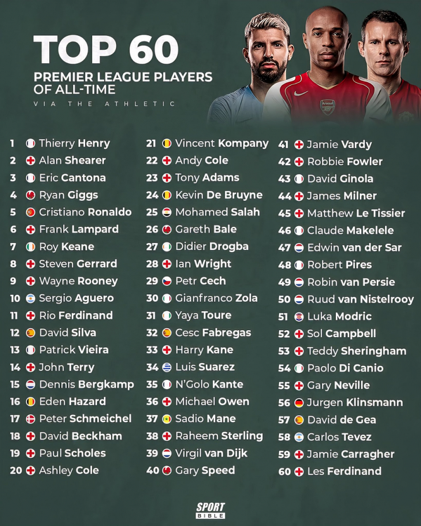 Ranking najlepszych piłkarzy w historii Premier League według The Athletic