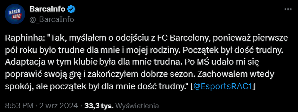 Raphinha myślał o odejściu z Barcy