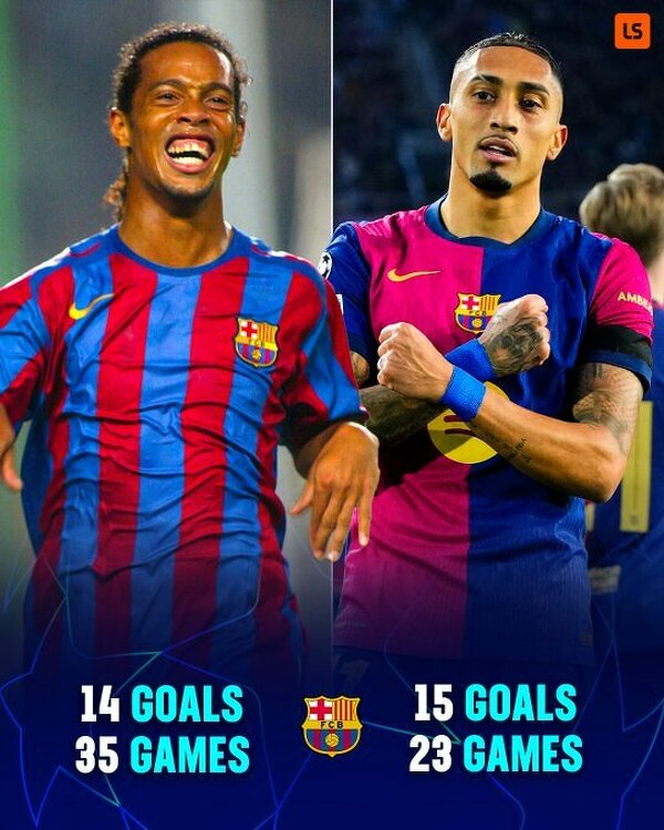 Raphinha strzelił dla Barcelony więcej goli w Lidze Mistrzów niż Ronaldinho