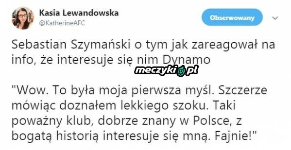 Reakcja Szymańskiego na zainteresowanie ze strony Dynama