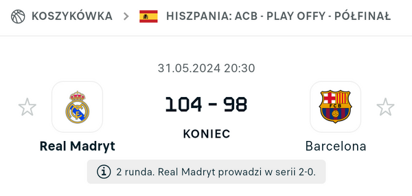 Real ponownie wygrywa i potrzebuje już tylko jednego zwycięstwa, aby zagrać w finale Ligi ACB