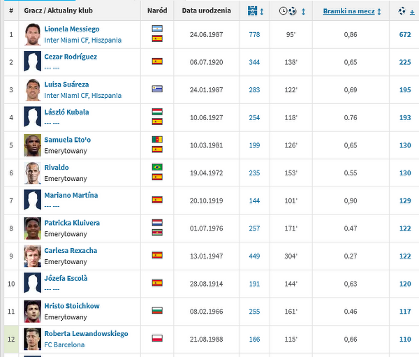 Robert Lewandowski już na 12. miejscu wśród najlepszych strzelców w historii Barcy. Czy dogoni Rivaldo?