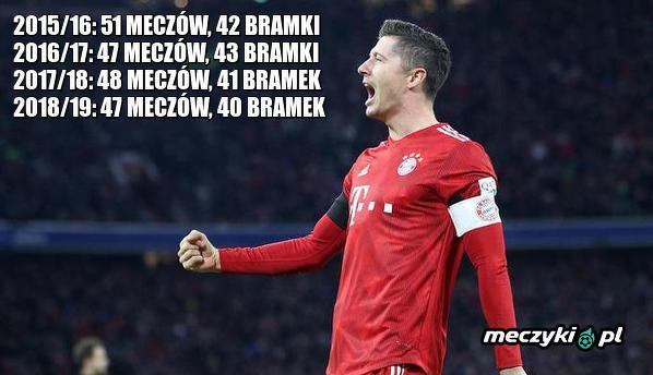 Robert Lewandowski strzelił co najmniej 40 bramek w 4 ostatnich sezonach