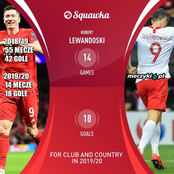 Robert Lewandowski strzelił już 42,9% bramek w sezonie 2019/20 dla klubu i kraju, którym zarządzał w sezonie 2018/19
