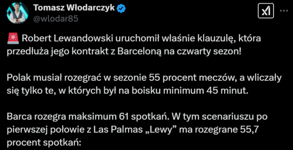 Robert Lewandowski uruchomił właśnie klauzulę, która przedłuży jego umowę z Barcą