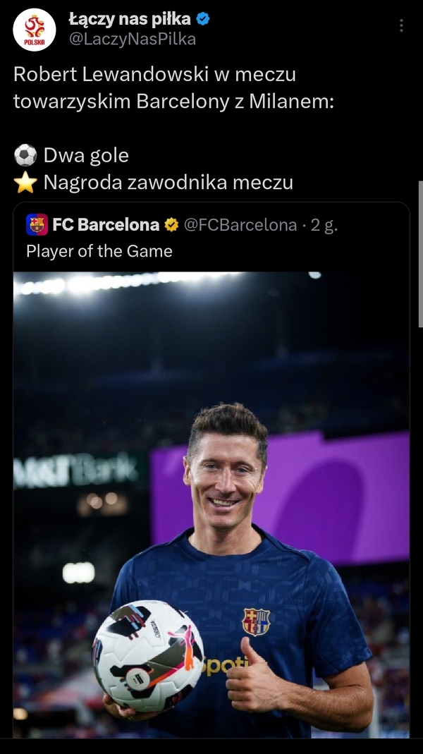 Robert Lewandowski wybrany MVP meczu Barcelona - Milan