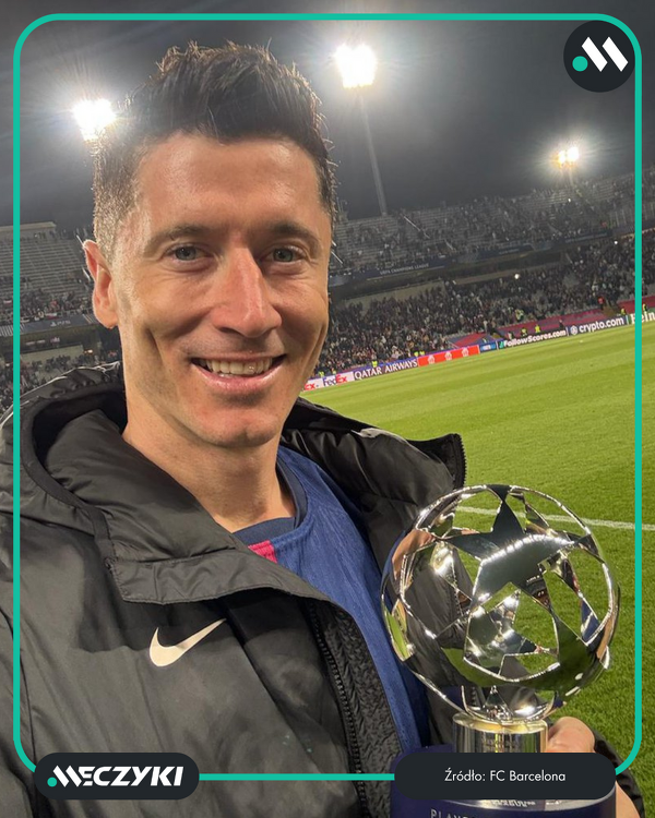 Robert Lewandowski ze statuetką dla zawodnika meczu Barcelona - BVB