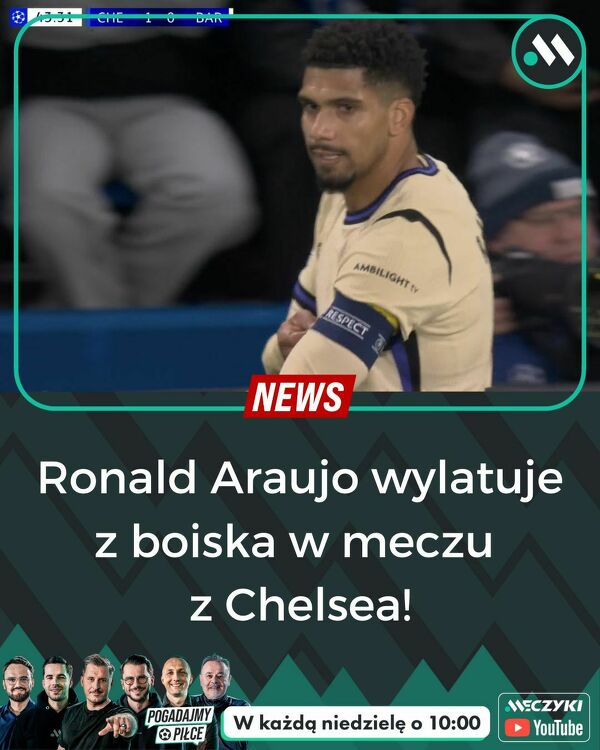 Ronald Araujo wylatuje z boiska po faulu na Cucurelli!