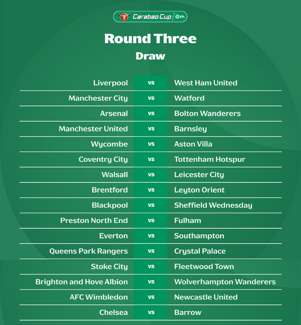 Rozlosowano pary trzeciej rundy Carabao Cup