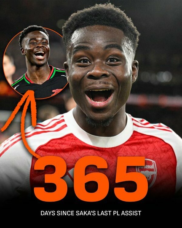 Saka czeka już rok, aby zanotować asystę w Premier League
