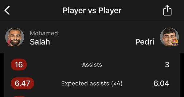 Salah ma dużo więcej asyst niż Pedri
