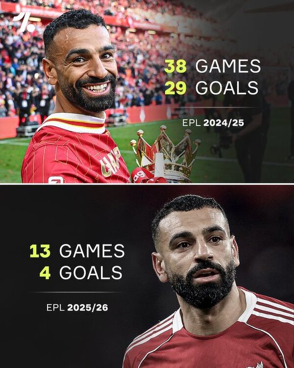 Salah w sezonie ubiegłym i obecnym sezonie Premier League