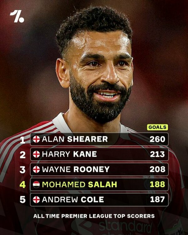 Salah wskoczył na czwarte miejsce rankingu najlepszych strzelców w historii Premier League