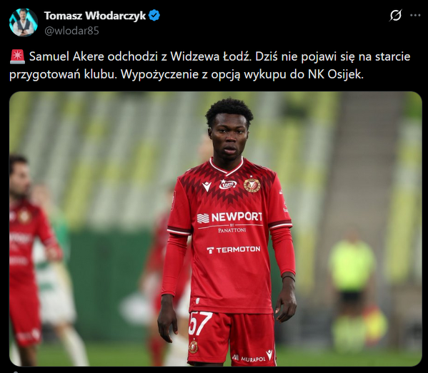 Samuel Akere odchodzi z Widzewa Łodź