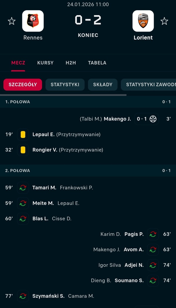 Sebastian Szymański debiutuje w Rennes, niestety jego drużyna przegrywa.