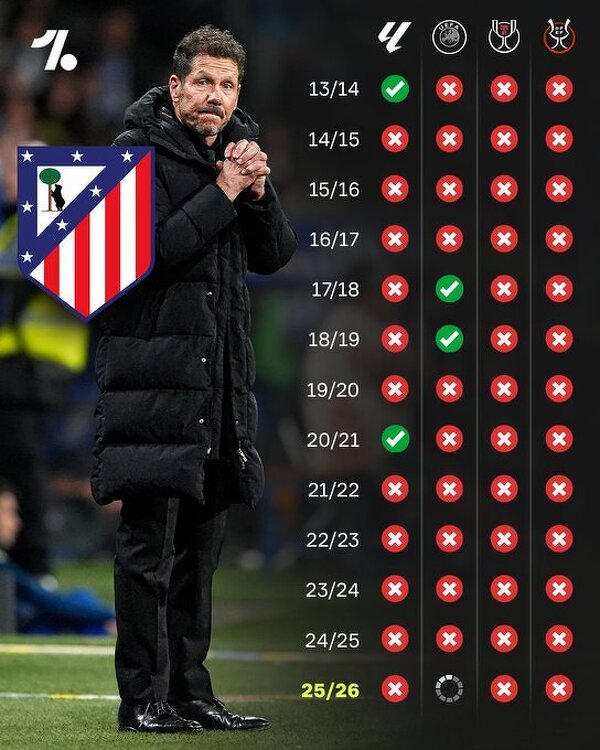 Simeone rzadko wygrywa trofea