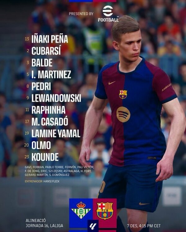Skład Barcelony na mecz z Realem Betis