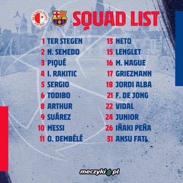 Skład Barcelony na Slavię Praga