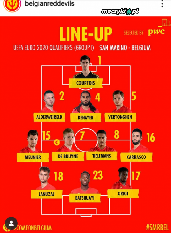 Skład Belgow na mecz z San Marino