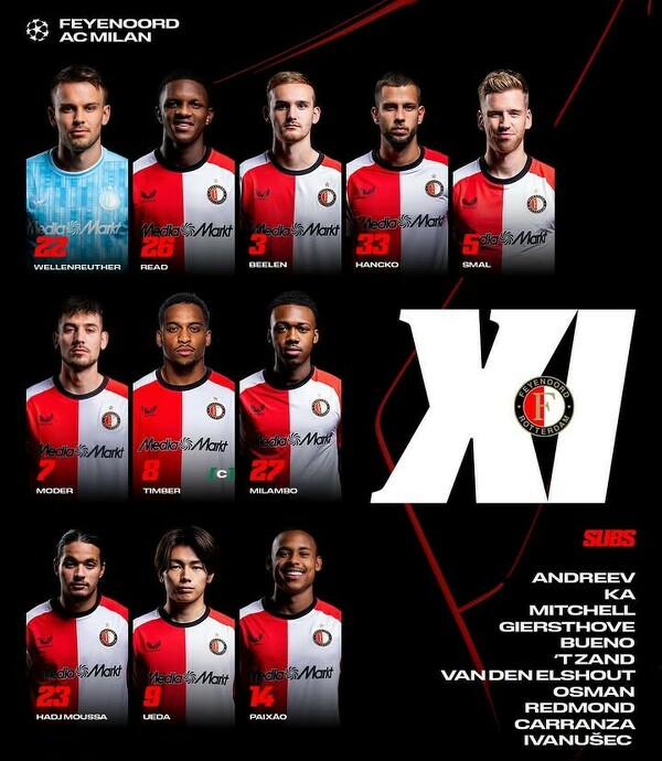 Skład Feyenoordu na Milan