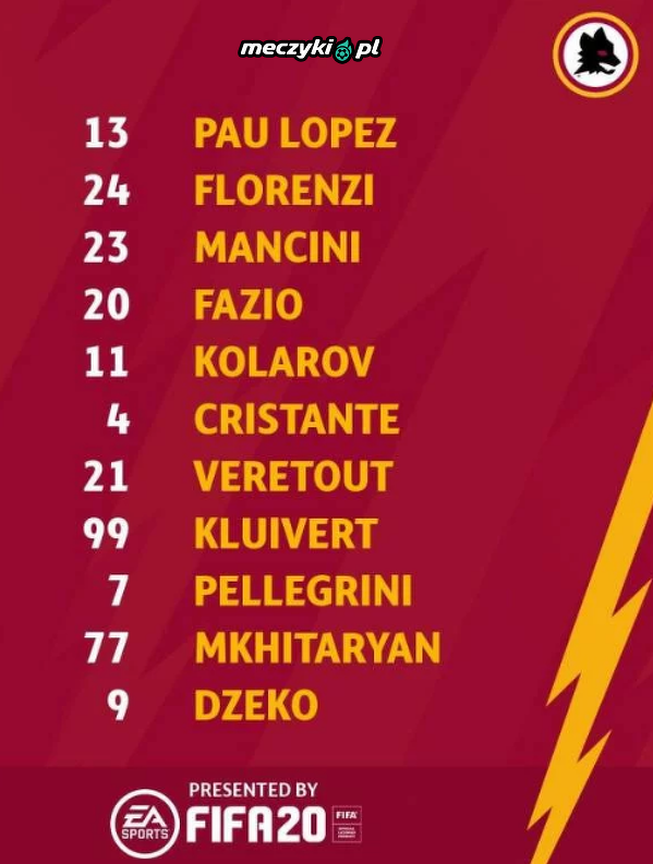 3. Skład Romy na mecz z Bologną