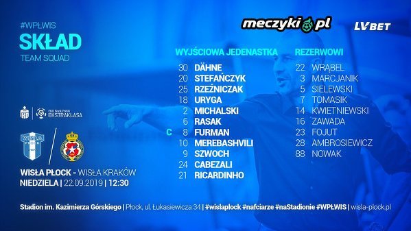 Skład Wisły Płock na mecz z Wisłą Kraków