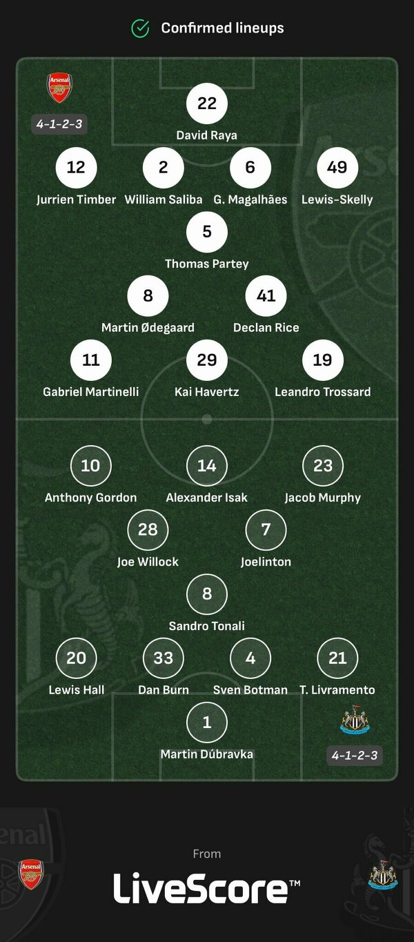 Składy Arsenalu i Newcastle na półfinałowy mecz Carabao Cup