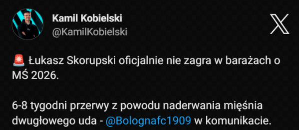 Skorupskiego czeka długa przerwa od gry. Nie zagra w barażach o MŚ